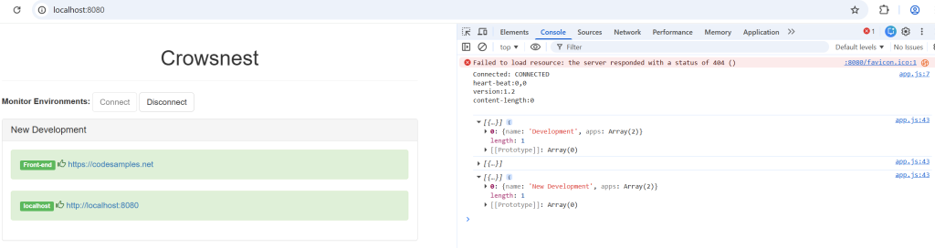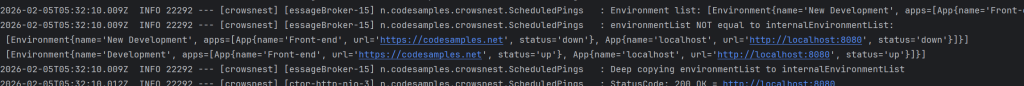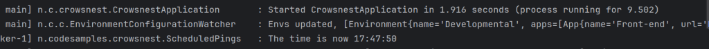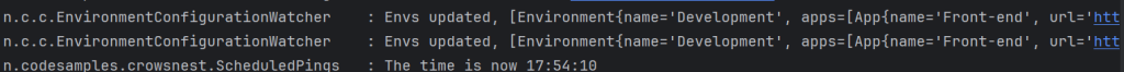 }The above code is part of my Crowsnest repository in GitHub. Crowsnest is a simple monitoring app. It just checks whether sites are online or offline. For this project, I didn’t want to restart the web app everytime I update the environments to monitor as specified in the environments.json file.