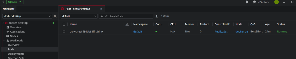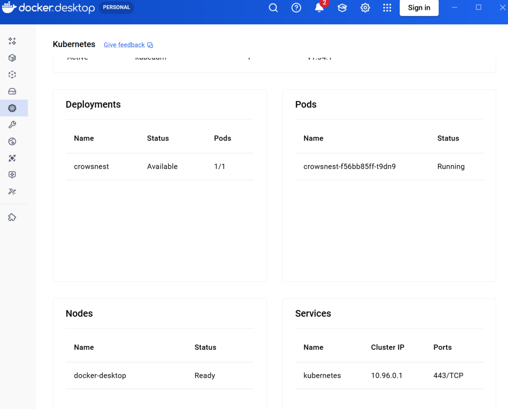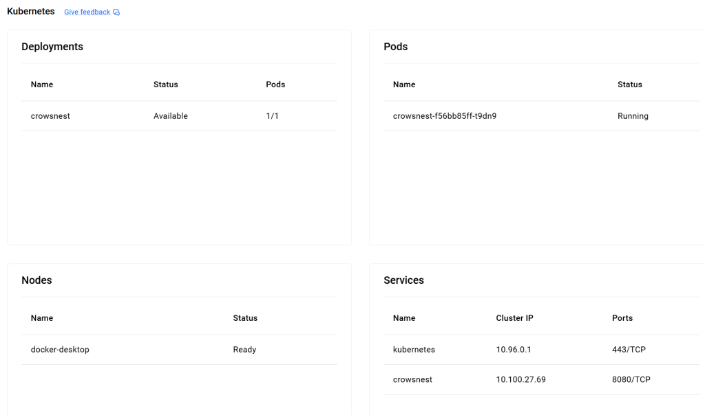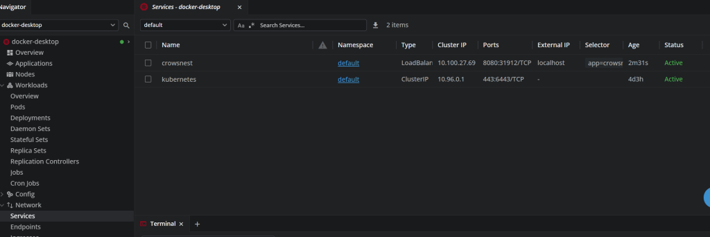2026-02-18T15:26:53.974Z INFO 1 --- [crowsnest] [ main] o.s.m.s.b.SimpleBrokerMessageHandler : Starting...If you are not old school, the docker desktop UI will look like so: