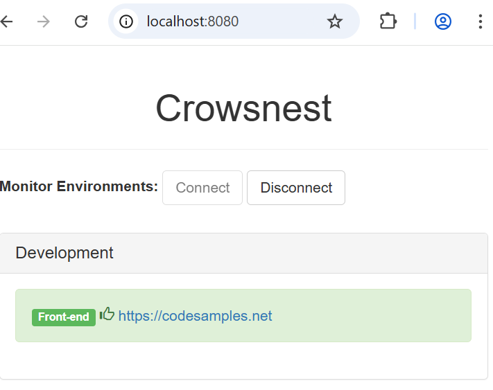 Righto, let’s see this image in action. Go to the command line and run docker run -p 8080:8080 crowsnest:v1.0.0. This command will create and run a new container from the image tagged crowsnest:v1.0.0 exposing port 8080 and routing incoming requests to Crowsnest running on port 8080. In the words, the first 8080 is the container port number. The second is your app’s port number. You should have something like below.