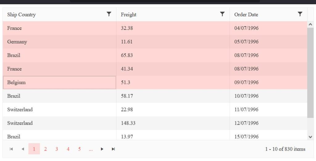 - Shift + click Belgium, the selection now starts from row 1 to row 5 (France, Germany, Brazil, France, Belgium). Selected should be row 3 to 5 (Brazil, France, Belgium).