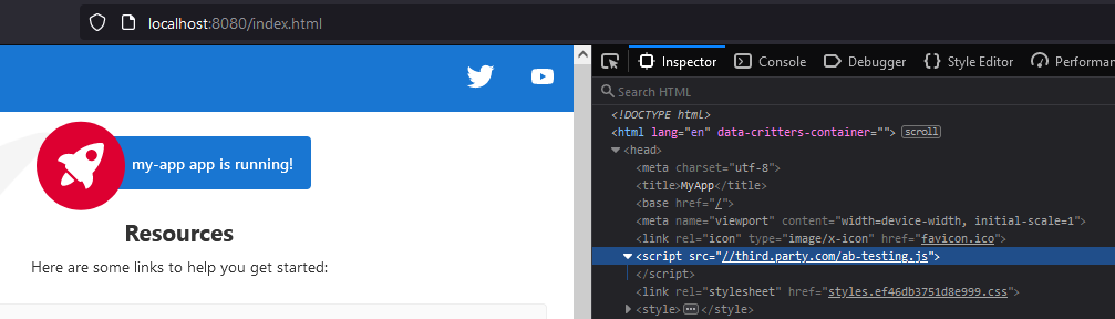 Second is to use Spring’s ResourceTransformer. We will use this method because the script tag is injected server side. Prior to serving the HTML file, it is transformed. The first strategy happens on the client side which is why I think this is a better solution. This also seems better because the “ab-testing.js” is already in the head prior to DOM manipulation by Angular. So let’s get to it.