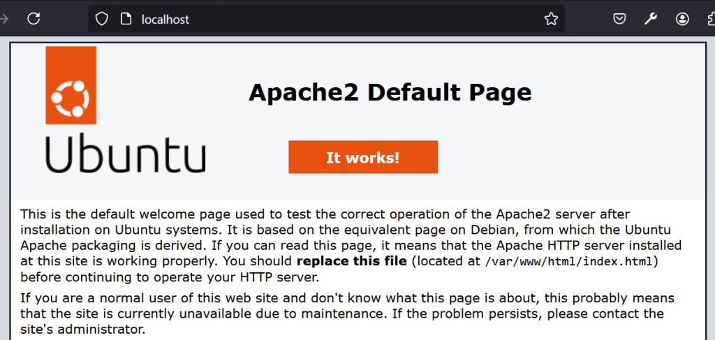 This example was done on a Windows 11 machine with Windows Subsystem for Linux running Ubuntu 22.04. Our web server is Apache v2.4. I will not be demonstrating how to install WSL and Ubuntu. I’m going to assume that you already have something similar set up. It is also assumed that the reader knows how to navigate Linux (e.g. vi, nano, sudo, etc.). This blog will demonstrate how to configure Apache2 to perform redirects. You should have something like below already.