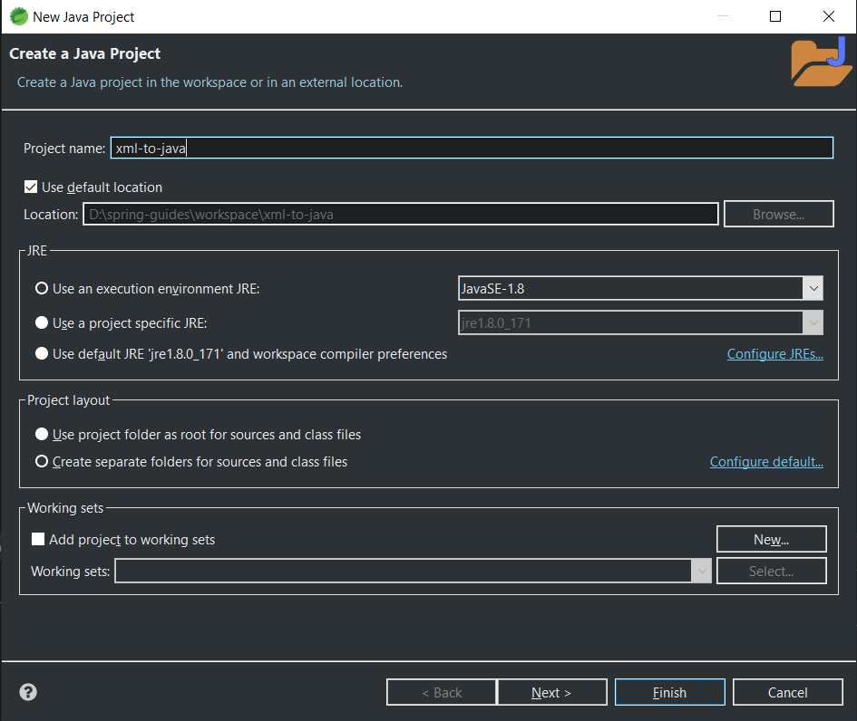 I’m using Spring Tool Suite 4 and Java 1.8 for this project. You can use whatever IDE you like. Create a new project like so: