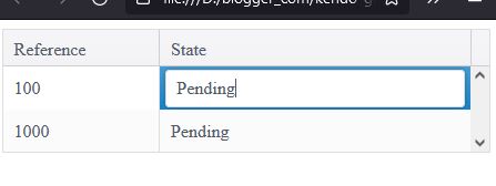 And in the methods option is where all the magic happens. The notEditable function simply returns false so that the cell will not be editable. In the customEditor function, for example purposes, if the reference is greater than 999 a drop down list is displayed otherwise a text box is displayed. We are using the Kendo Vue Wrappers version of the grid and this is why the custom editor is defined using Kendo UI for jQuery. If we want to go to a pure Vue implementation then we will have to switch to the Kendo UI Native for Vue suite.