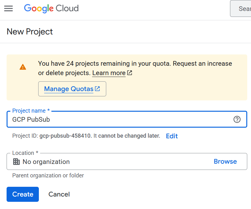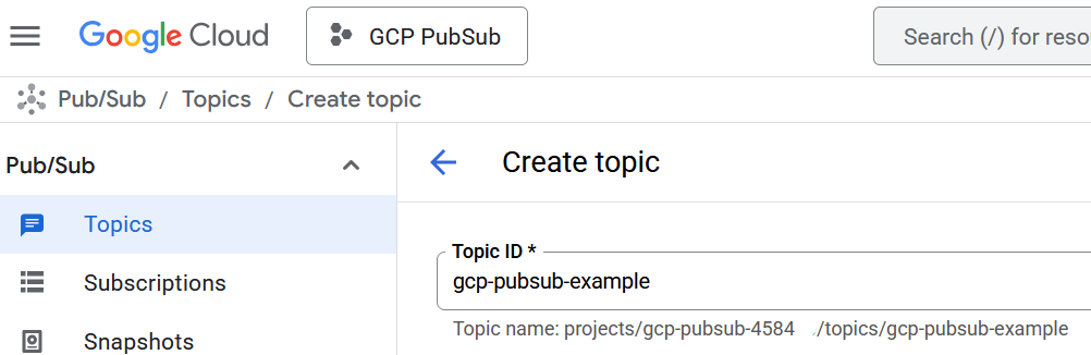 Now that the administrative stuff has all been set up, it’s time to create a PubSub topic and subscription.