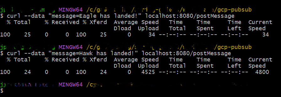 <!-- snipped -->Our GCP PubSub message sender code is short and sweet. When an HTTP POST is received, it then submits the message to GCP PubSub. Here’s the code. Explanation follows after.